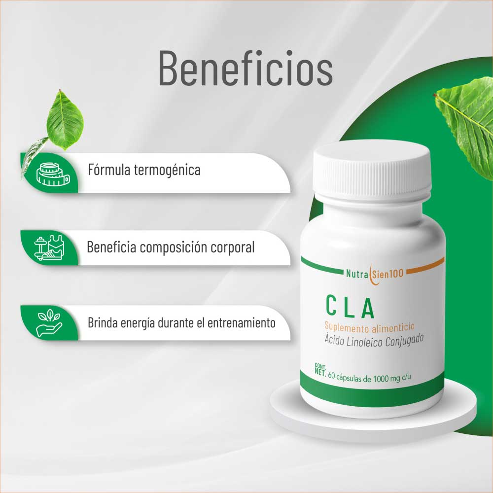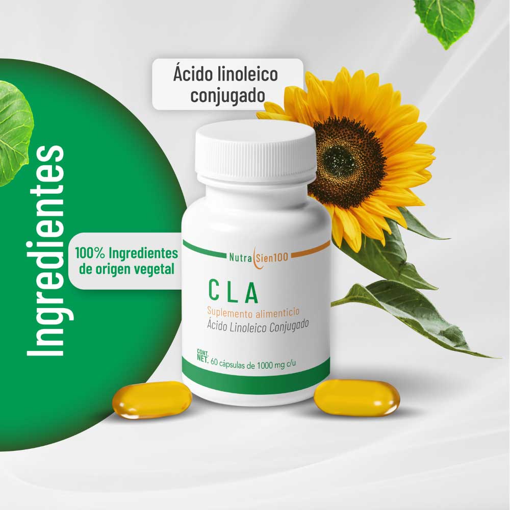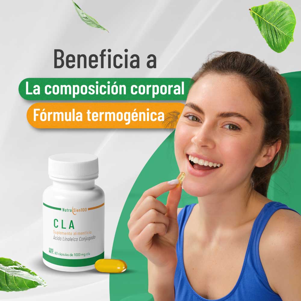 CLA (Ácido Linoleico Conjugado) de NUTRASIEN100 es el suplemento ideal para tonificar la zona abdominal y favorecer el aumento de masa muscular.