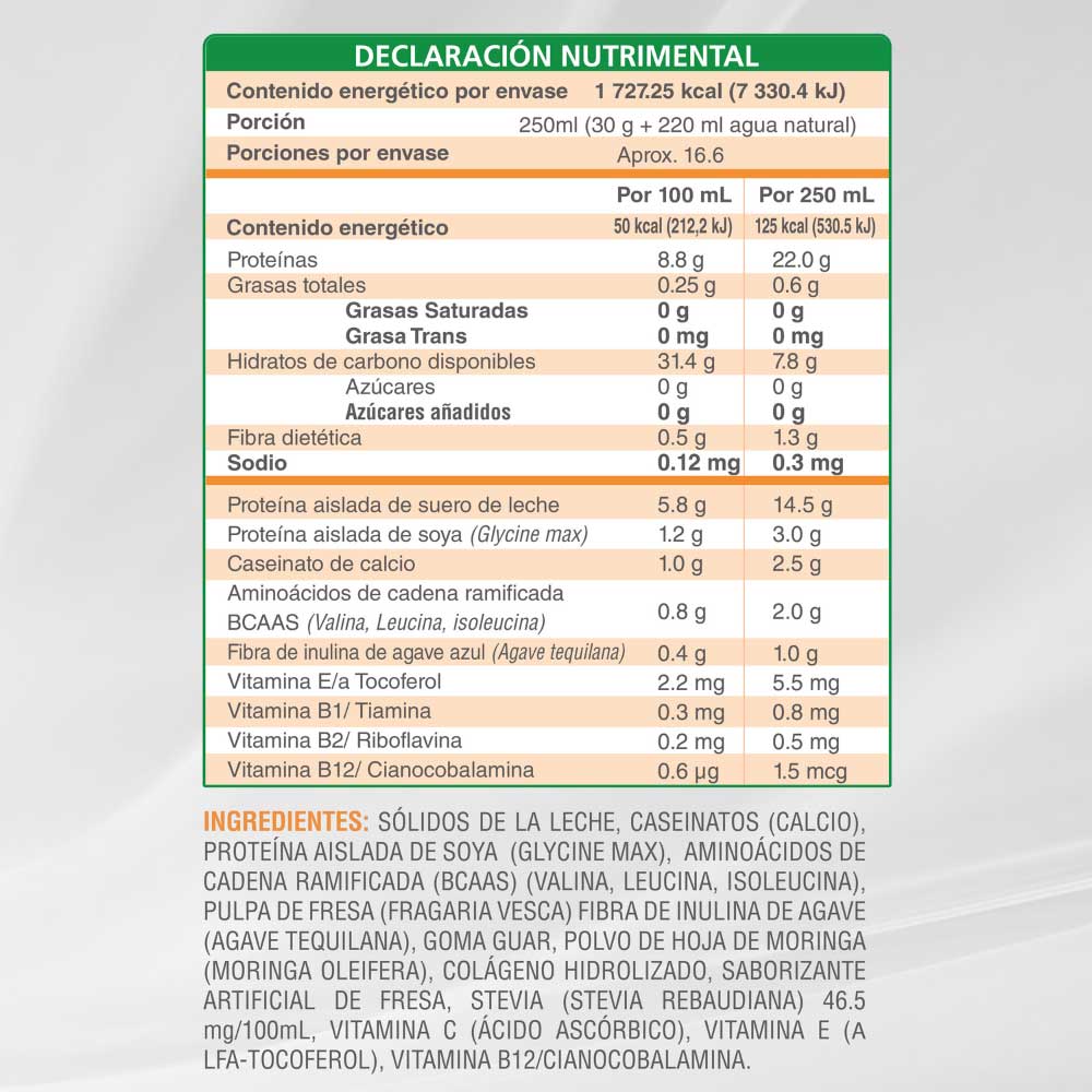 ✅ Contiene ingredientes naturales como moringa, fresa o vaina o cocoa natural + inulina de agave.