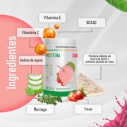 Sabor Fresa o Vainilla o chocolate, con 21g de proteína es la más completa, de fácil digestión y asimilación, lo mejor de todo con delicioso sabor. Elaborada con proteína aislada de suero de leche y aislada de soya más MORINGA, BCAAS y vitaminas.